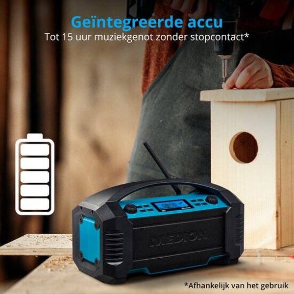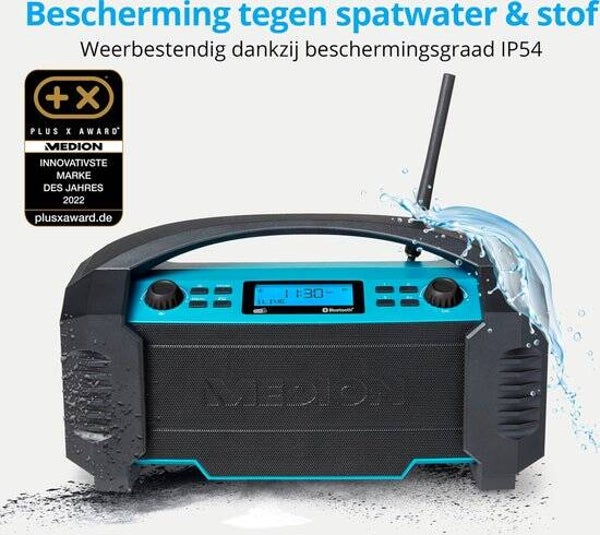 Medion Bouwradio DAB+ Medion - FM -Bluetooth - Stof/spatwater bescherming (IP54) - Robuuste behuizing - 15 W RMS